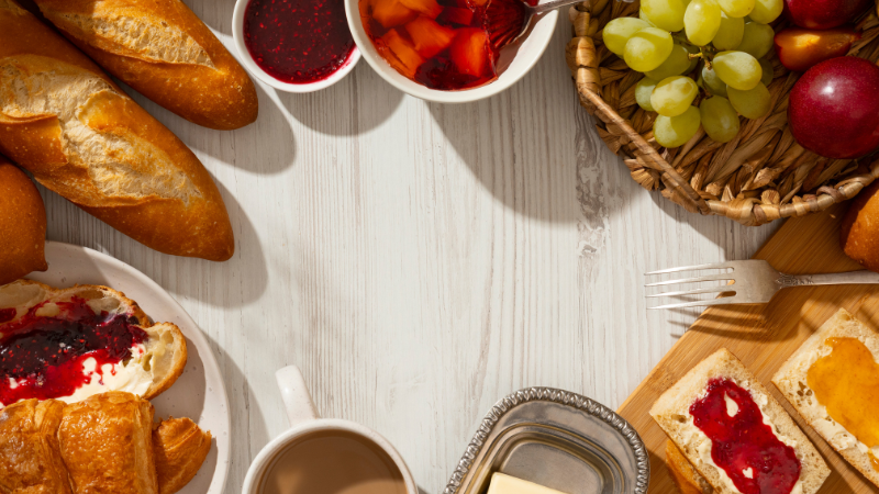 - Toque de Chef: Adicione pequenas porções de Cream Cheese ou manteiga de marca premium (como a Président) em potinhos de vidro individuais. Se você tem habilidade também pode oferecer patês caseiros e geleias.